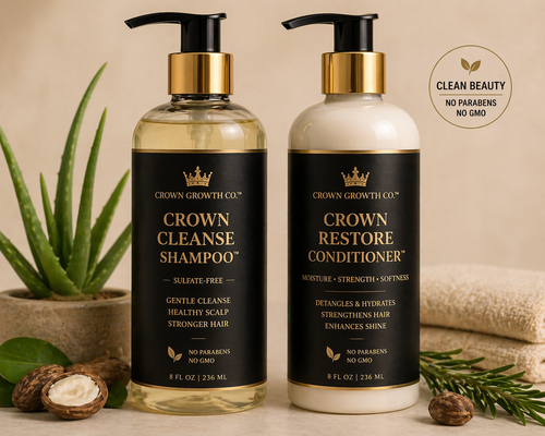 The Crown Growth & Style Bundle™ is your complete daily hair care routine, designed to cleanse, nourish, strengthen, and promote healthy hair growth from root to tip. This all-in-one system combines targeted treatments and moisture-rich formulas to support stronger, thicker, and more manageable hair.